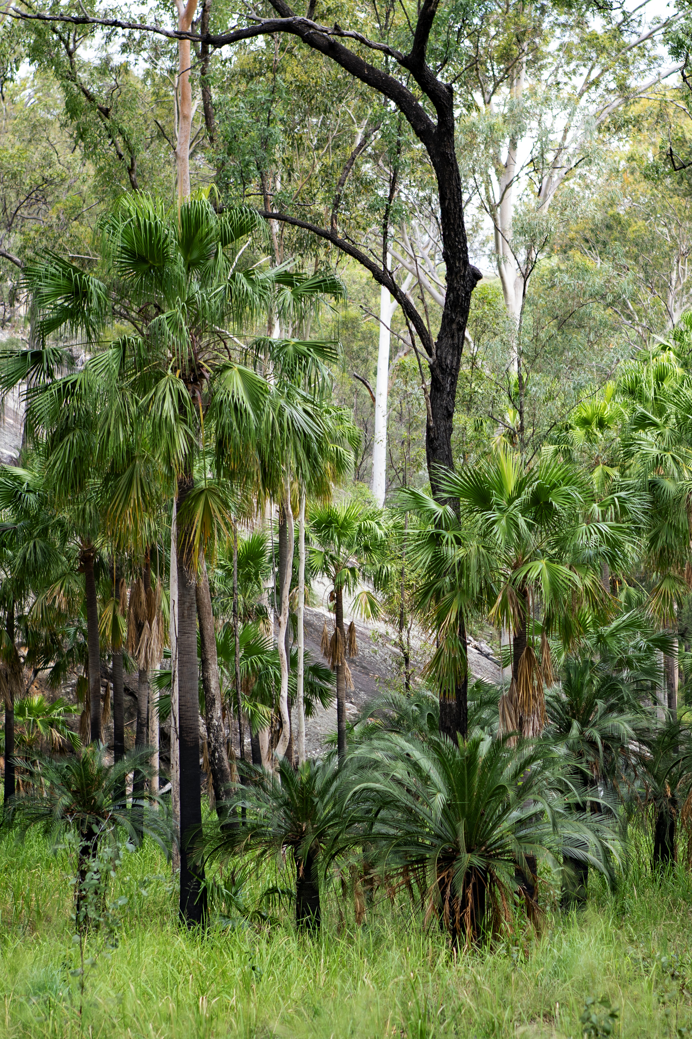 Queensland can have random patches of country, even mid-state that can look coastal, with these tall green palms creating a little oasis on the outskirts of Carnarvon Gorge.