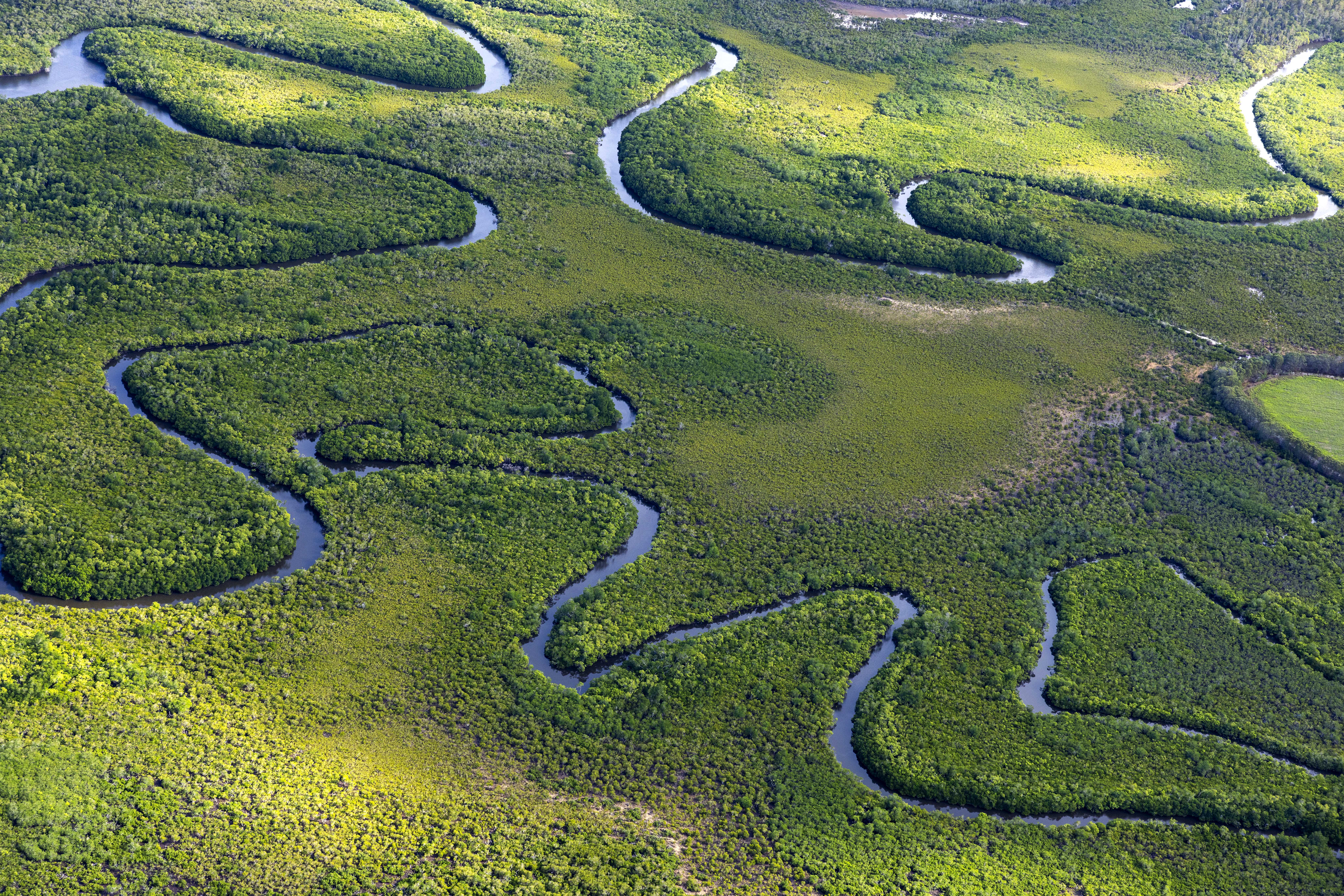 A helicopter trip over the Cassowary Coast area, just south of Innisfail and north of Mission Beach, revealed some vibrant greens bisected by deep blue meandering river systems.
