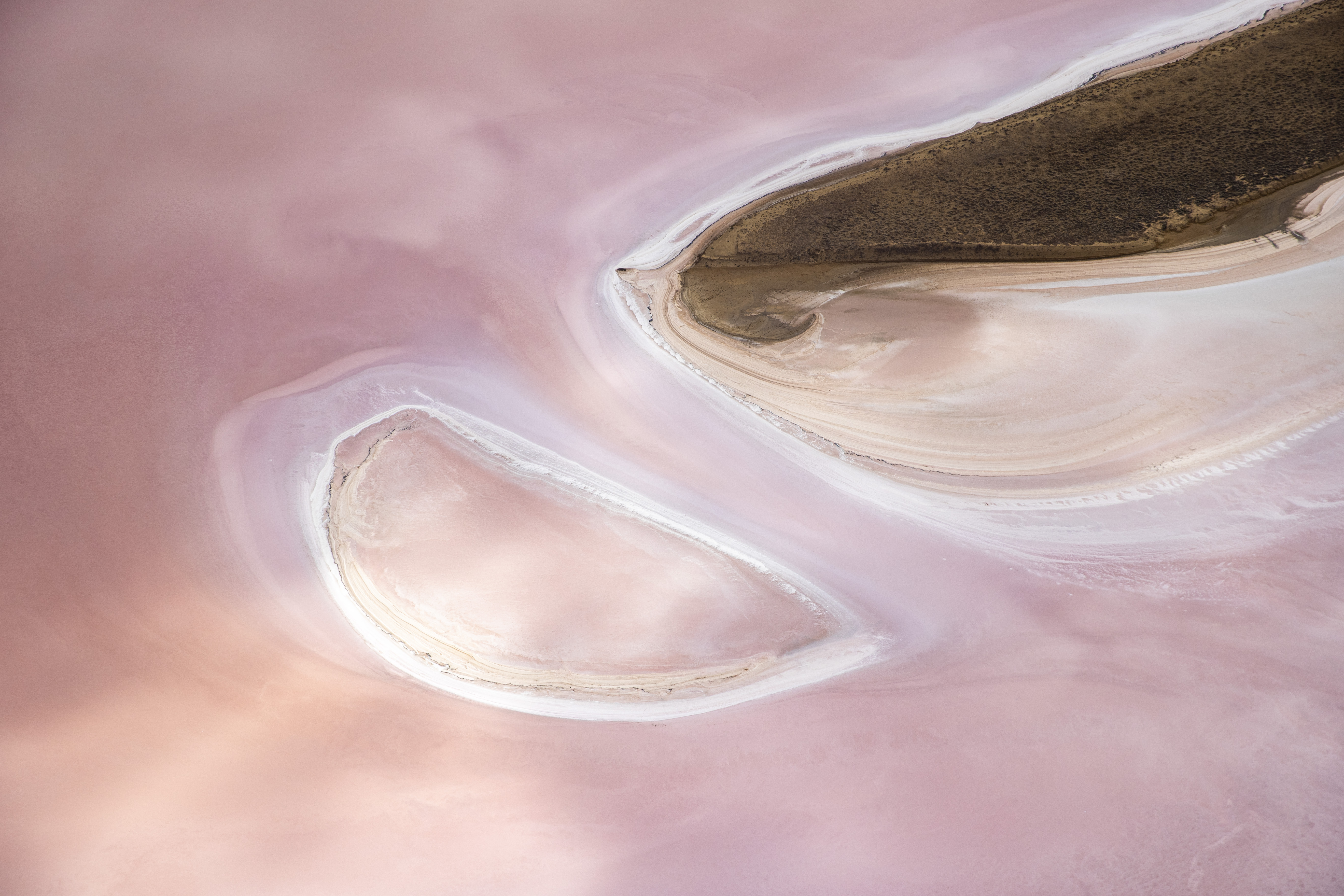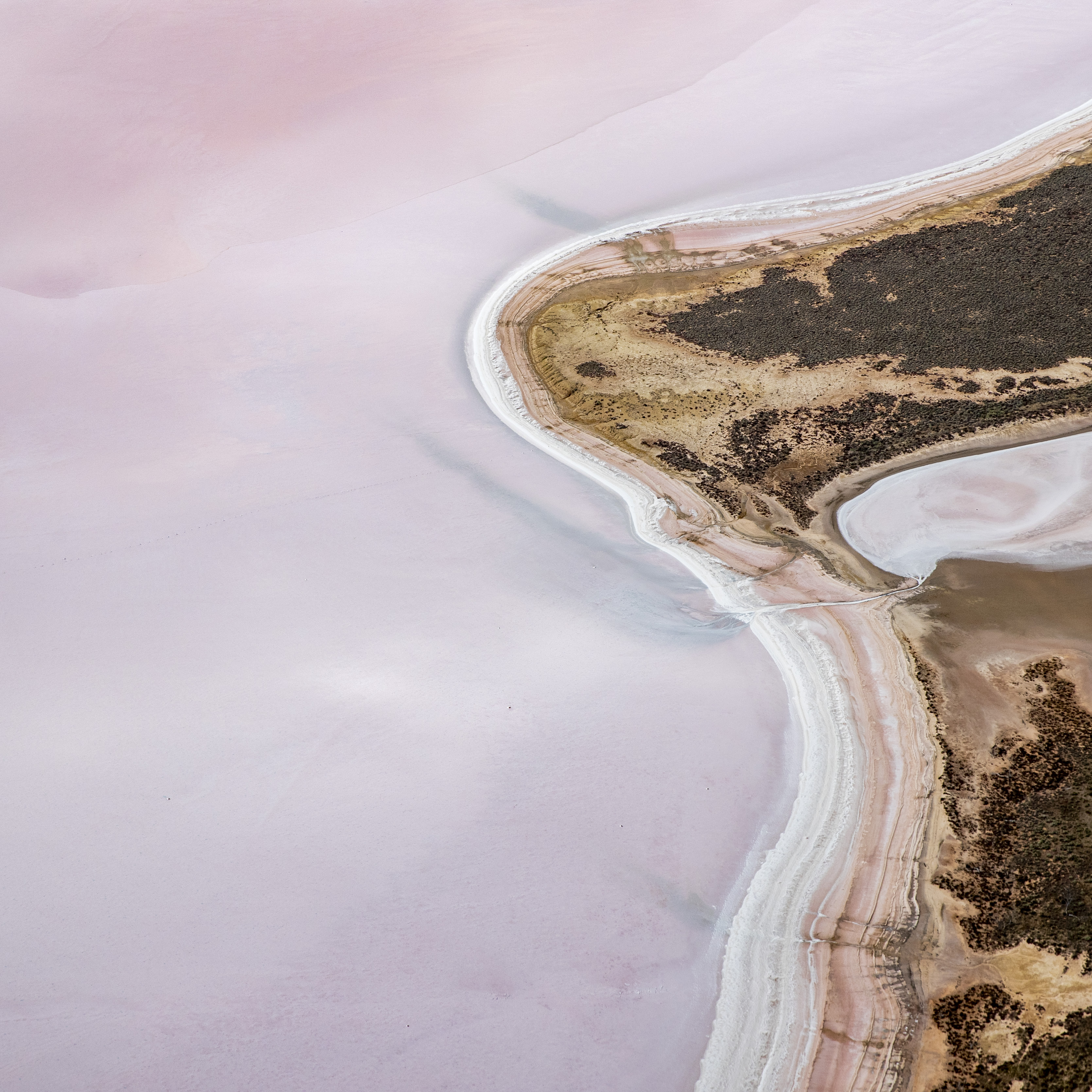 Lake Tyrell displaying some of the soft changes in colour pallets of the salt lakes surrounding an island of saltbush and sand. The banded colours and white salt crusted edges give an abstract melted ice cream look. Being my first trip and where I learnt to fly a drone, these images are from a fixed wing flight and the trusty Canon.